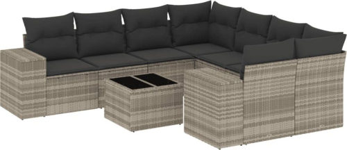 vidaXL vidaXL 9-cz. zestaw mebli ogrodowych, poduszki, jasnoszary polirattan