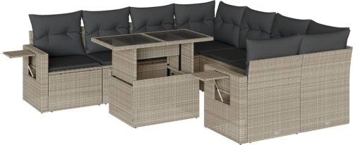 vidaXL vidaXL 9-cz. zestaw mebli ogrodowych, poduszki, jasnoszary polirattan