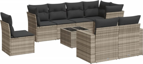 vidaXL vidaXL 9-cz. zestaw mebli ogrodowych, poduszki, jasnoszary polirattan