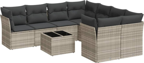 vidaXL vidaXL 9-cz. zestaw mebli ogrodowych, poduszki, jasnoszary polirattan