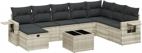 vidaXL vidaXL 9-cz. zestaw mebli ogrodowych, poduszki, jasnoszary polirattan