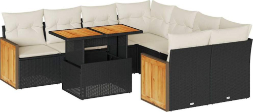 vidaXL vidaXL 9-cz. zestaw mebli z poduszkami, czarny, polirattan i akacja