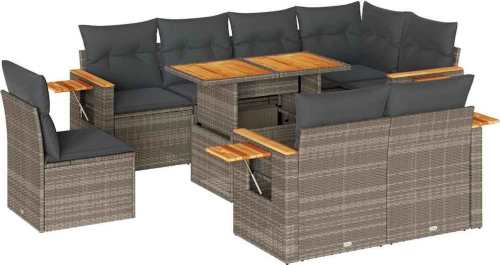 vidaXL vidaXL 9-cz. zestaw mebli z poduszkami, szary, polirattan i akacja