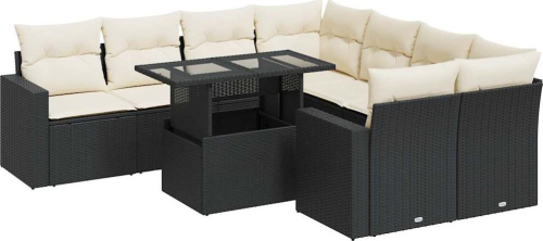 vidaXL vidaXL 9-cz. zestaw wypoczynkowy do ogrodu, z poduszkami, czarny