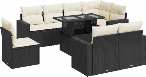 vidaXL vidaXL 9-cz. zestaw wypoczynkowy do ogrodu, z poduszkami, czarny