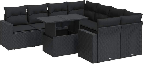 vidaXL vidaXL 9-cz. zestaw wypoczynkowy do ogrodu, z poduszkami, czarny