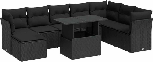 vidaXL vidaXL 9-cz. zestaw wypoczynkowy do ogrodu, z poduszkami, czarny