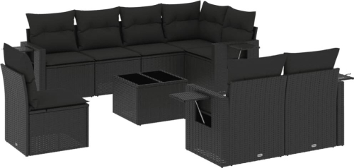 vidaXL vidaXL 9-cz. zestaw wypoczynkowy do ogrodu, z poduszkami, czarny