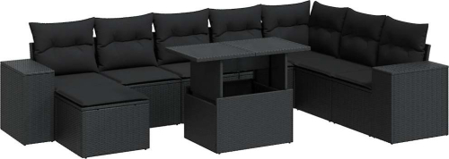 vidaXL vidaXL 9-cz. zestaw wypoczynkowy do ogrodu, z poduszkami, czarny