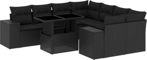 vidaXL vidaXL 9-cz. zestaw wypoczynkowy do ogrodu, z poduszkami, czarny