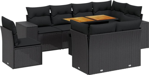 vidaXL vidaXL 9-cz. zestaw wypoczynkowy do ogrodu, z poduszkami, czarny