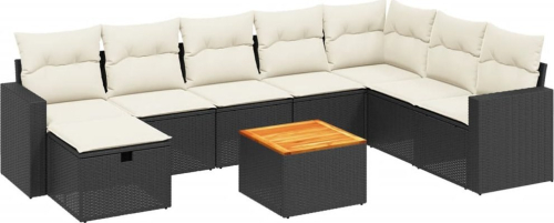 vidaXL vidaXL 9-cz. zestaw wypoczynkowy do ogrodu, z poduszkami, czarny