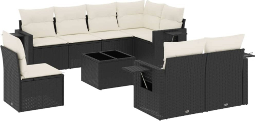 vidaXL vidaXL 9-cz. zestaw wypoczynkowy do ogrodu, z poduszkami, czarny