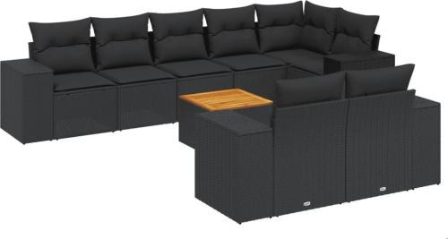 vidaXL vidaXL 9-cz. zestaw wypoczynkowy do ogrodu, z poduszkami, czarny