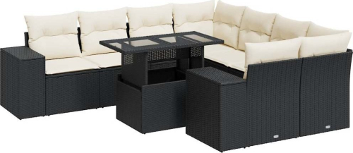vidaXL vidaXL 9-cz. zestaw wypoczynkowy do ogrodu, z poduszkami, czarny