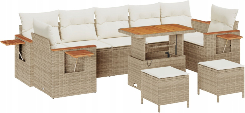 Vidaxl Zestaw 10-częściowy sof ogrodowych z poduszkami Beżowy Polirattan Akacja