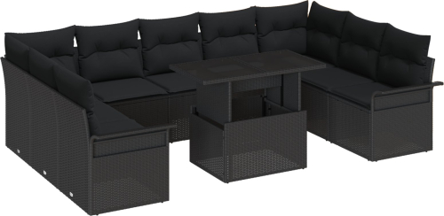 Vidaxl Zestaw 10-częściowy sof ogrodowych z poduszkami Czarny Polirattan