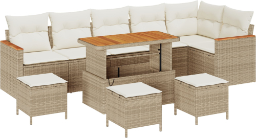 Vidaxl Zestaw 10 elementów sof ogrodowych z poduszkami Beżowy Polirattan Akacja
