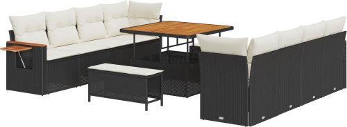 vidaXL Zestaw 11-elementowy sofy ogrodowej z poduszkami - czarny rattan akacja