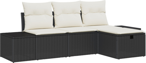 vidaXL Zestaw 4-częściowy sof ogrodowych z poduszkami czarny polirattan
