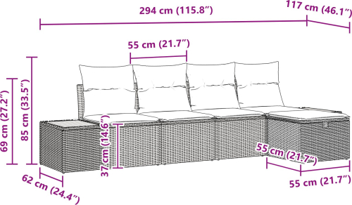 vidaXL Zestaw 5 Części Sofy Ogrodowej z Poduszkami Beżowy Polirattan