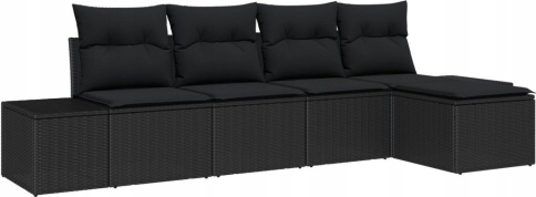 vidaXL Zestaw 5 częściowy sof ogrodowych z poduszkami Czarny polirattan