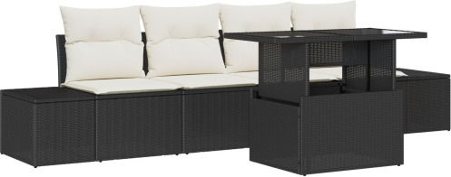 vidaXL Zestaw 5-częściowy sof ogrodowych z poduszkami Czarny Polirattan