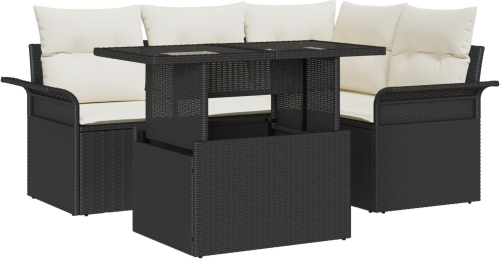 vidaXL Zestaw 5-częściowy sof ogrodowych z poduszkami czarny polirattan