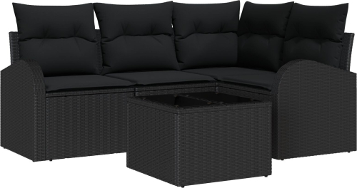vidaXL Zestaw 5 częściowy sof ogrodowych z poduszkami czarnymi polirattanu