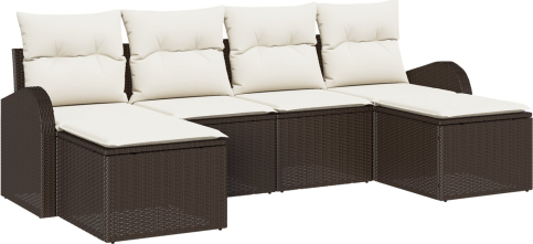 vidaXL Zestaw 6-częściowy sof ogrodowych z poduszkami Brązowy Polirattan