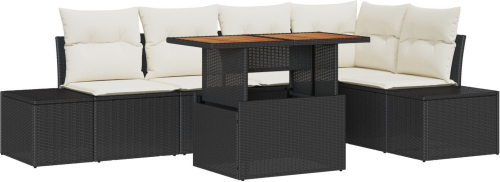 vidaXL Zestaw 6-częściowy sof ogrodowych z poduszkami Czarny Poli rattan