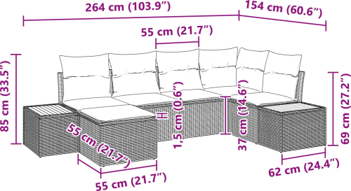 vidaXL Zestaw 6-częściowy sof ogrodowych z poduszkami Czarny Polirattan Akacja