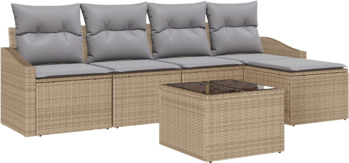 vidaXL Zestaw 6-częściowy sof ogrodowych z poduszkami czarny polirattan