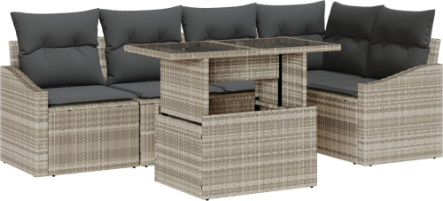 vidaXL Zestaw 6-częściowy sof ogrodowych z poduszkami jasnoszary polirattan