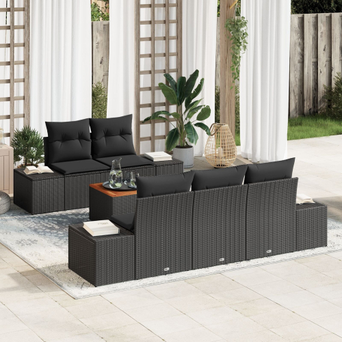 vidaXL Zestaw 6 Częściowych Sof Ogrodowych z Poduszkami Czarny Polirattan Akacja