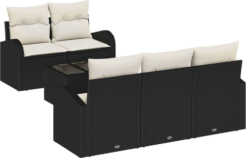 vidaXL Zestaw 6 sztuk sof ogrodowych z poduszkami Czarny Polirattan