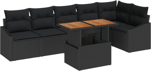 vidaXL Zestaw 7-częściowy sof ogrodowych z poduszkami Czarny Polirattan