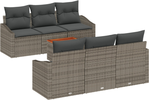vidaXL Zestaw 7-częściowy sof ogrodowych z poduszkami szary polirattan akacjowy