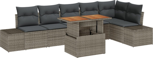 vidaXL Zestaw 7-częściowy sof ogrodowych z poduszkami szary polirattan