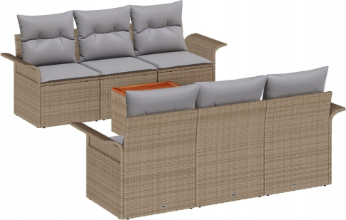 vidaXL Zestaw 7 elementowy sofy ogrodowej z poduszkami Beżowy Poli Rattan Akacja