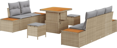 vidaXL Zestaw 8-częściowy sof ogrodowych z poduszkami beżowy polirattan akacja