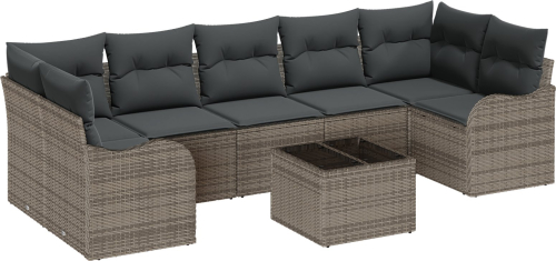 Vidaxl Zestaw 8-częściowy sof ogrodowych z poduszkami szary poli rattan