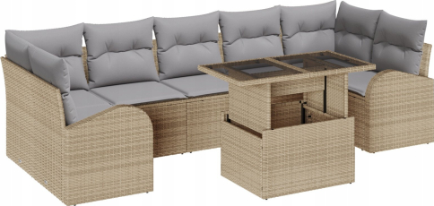 Vidaxl Zestaw 8 Elementów Sof Ogrodowych z Poduszkami Beżowy Poli Rattan