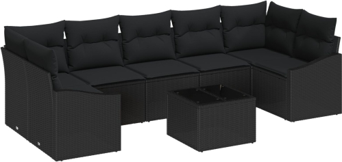 vidaXL Zestaw 8 elementów sofa ogrodowa z poduszkami czarny polirattan
