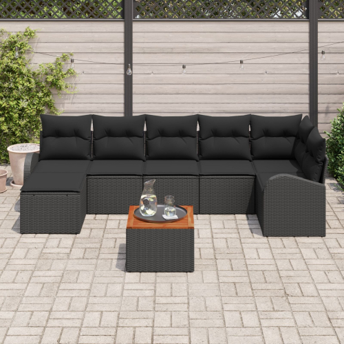 vidaXL Zestaw 8 elementów sofy ogrodowej z poduszkami czarny polirattan akacja