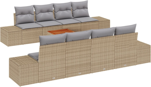 vidaXL Zestaw 9-częściowy sof ogrodowych z poduszkami Beżowy Poly Rattan Akacja