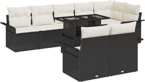 vidaXL Zestaw 9-częściowy sof ogrodowych z poduszkami Czarny Polirattan