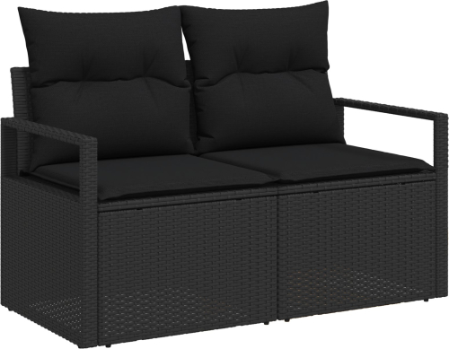 Vidaxl Zestaw 9-częściowy sof ogrodowych z poduszkami Czarny Polirattan Akacja