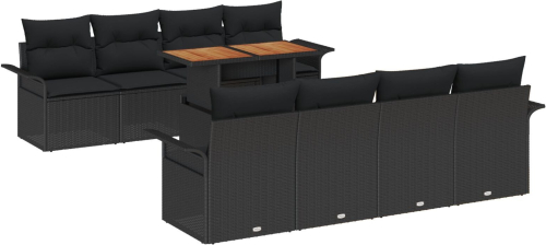 vidaXL Zestaw 9-częściowy sof ogrodowych z poduszkami czarnymi i tekowymi