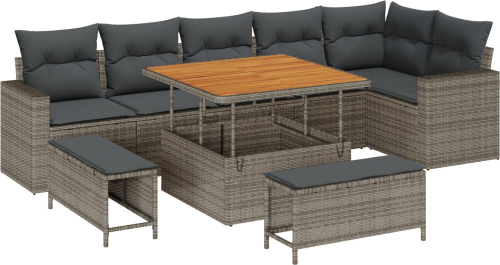 vidaXL Zestaw 9-częściowy sof ogrodowych z poduszkami szary polirattan akacja